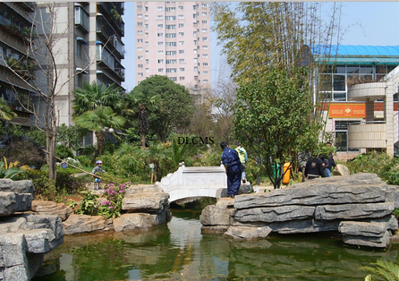 項(xiàng)目描述:景觀面積約7520㎡,包括水池水景、假山堆筑、溪流駁岸、雕塑、場(chǎng)地鋪裝及植物種植等。